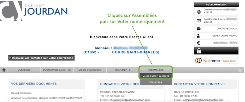 Pour cela, une fois connecté sur https://www.cabinetjourdan.com/espace-client/